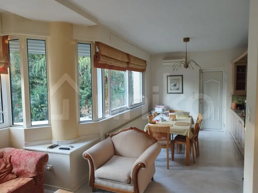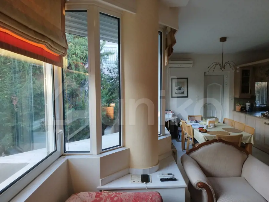 Πωλείται μονοκατοικία 365 τ.μ. σε οικόπεδο 800 τ.μ. στη Ρέα Δροσιάς, σε ήσυχο σημείο με άμεση πρόσβαση προς τη Λεωφόρο Διονύσου. Η μονοκατοικία αναπτύσσεται σε τρία επίπεδα και διαθέτει συνολικά πέντε υπνοδωμάτια, τέσσερα μπάνια και ένα WC. Στο υπερυψωμένο ισόγειο των 143,32 τ.μ. υπάρχει σαλόνι με τζάκι, μεγάλη κουζίνα με χώρο καθιστικού και τραπεζαρίας, ένα βοηθητικό υπνοδωμάτιο και μπάνιο. Η εσωτερική μαρμάρινη σκάλα φωτίζεται φυσικά από το sky light του επάνω ορόφου, ενώ όλοι οι κύριοι χώροι έχουν άμεση έξοδο σε βεράντες και στον καταπράσινο κήπο. Ο πρώτος όροφος των 93,86 τ.μ. φιλοξενεί δύο παιδικά υπνοδωμάτια που μοιράζονται ένα μπάνιο, καθώς και ένα master υπνοδωμάτιο με en suite μπάνιο και walk-in closet. Όλοι οι χώροι έχουν πρόσβαση σε βεράντες. Το χαμηλότερο επίπεδο των 128,28 τ.μ., το οποίο είναι φωτεινό και προσβάσιμο λόγω του επικλινούς οικοπέδου, περιλαμβάνει καθιστικό, γραφείο, ξενώνα, μπάνιο και χώρο με αναμονές για δεύτερη κουζίνα. Διαθέτει τρεις εξόδους προς την αυλή, τον κήπο και το σκεπαστό parking των 21,39 τ.μ., και μπορεί εύκολα να λειτουργήσει ως ανεξάρτητη κατοικία. Η μονοκατοικία διαθέτει μαρμάρινα και ξύλινα πατώματα, κουφώματα αλουμινίου με διπλά τζάμια, θωρακισμένη πόρτα, αυτόνομη θέρμανση πετρελαίου ανά επίπεδο, καινούργιο λέβητα, ηλιακό θερμοσίφωνα, τζάκι, συναγερμό, εντοιχιζόμενες ντουλάπες και πολλούς αποθηκευτικούς χώρους. Ο εξωτερικός χώρος περιλαμβάνει διαμορφωμένο κήπο με γκαζόν, αυτόματο πότισμα, πλακόστρωτη αυλή και περιμετρικό φωτισμό. Επιτρέπονται κατοικίδια. Η περιοχή της Ρέας στη Δροσιά είναι γνωστή για τη φυσική της ομορφιά, την ηρεμία και το πράσινο, ενώ προσφέρει εύκολη πρόσβαση σε κεντρικούς οδικούς άξονες, σχολεία και καταστήματα. Το ακίνητο είναι διαθέσιμο στο Uniko, τον νέο, απόλυτο προορισμό για αγοραπωλησίες ακινήτων στην Ελλάδα, με την αξιοπιστία της Εθνικής Τράπεζας. Μάθε περισσότερα για το ακίνητο παρακάτω.