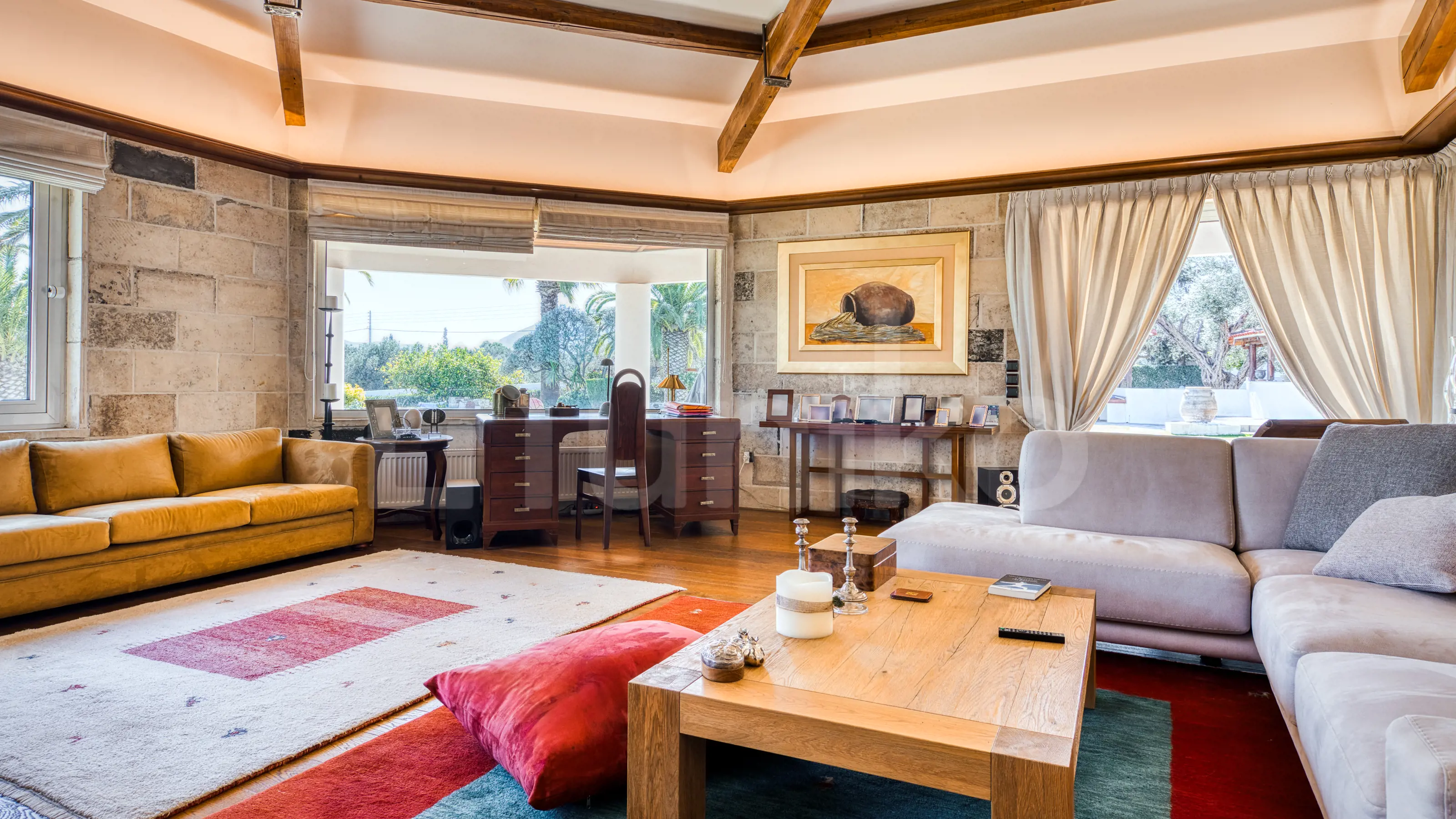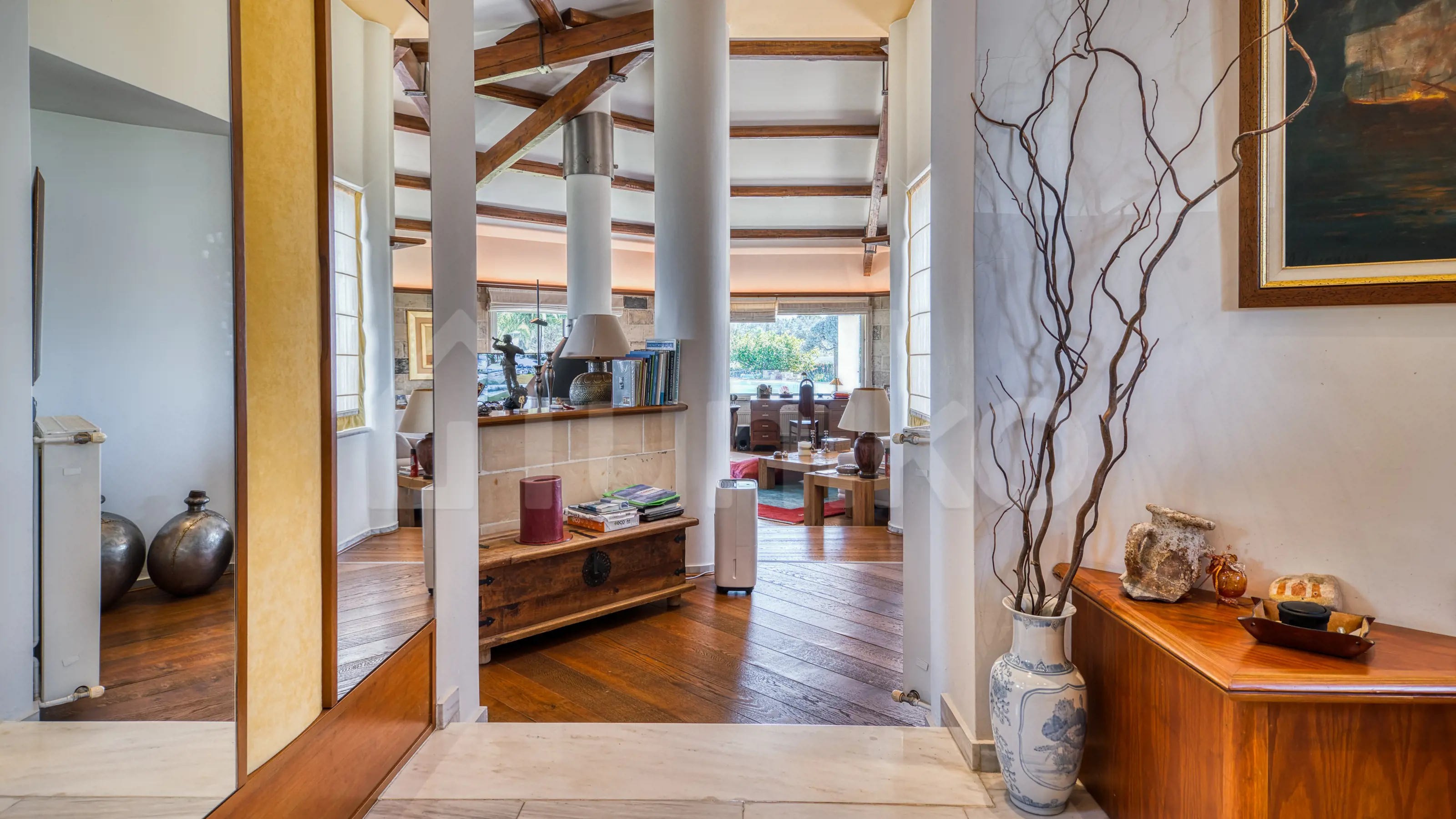Στην ήσυχη περιοχή της Αγίας Τριάδας στο Μαρκόπουλο, αυτή η πλήρως ανακαινισμένη βίλα 300 τ.μ. προσφέρει σπάνια ποιότητα διαβίωσης μέσα σε καταπράσινο ιδιόκτητο οικόπεδο 7.200 τ.μ. Αναπτύσσεται σε ισόγειο επίπεδο και διαθέτει τέσσερα υπνοδωμάτια, τρία μπάνια, επιπλέον WC, δύο σαλόνια, δύο κουζίνες και μεγάλους εξωτερικούς χώρους. Η βίλα ξεχωρίζει για τη μεγάλη της πισίνα, τον προσεγμένο κήπο, τη διαμπερή διαρρύθμιση και τις υψηλές προδιαγραφές ανακαίνισης. Είναι εξοπλισμένη με μαρμάρινα και ξύλινα δάπεδα, κλιματισμό, ενεργειακά κουφώματα αλουμινίου, ηλιακό θερμοσίφωνα, τζάκι, jacuzzi, συναγερμό και τρεις καλυμμένες θέσεις στάθμευσης. Το ακίνητο είναι διαθέσιμο στο Uniko, τον νέο, απόλυτο προορισμό για αγοραπωλησίες ακινήτων στην Ελλάδα, με την αξιοπιστία της Εθνικής Τράπεζας. Μάθε περισσότερα για το ακίνητο παρακάτω.