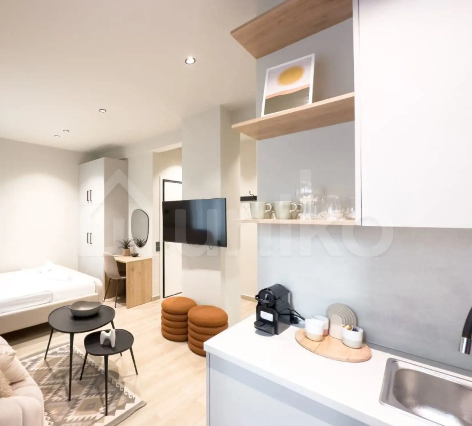 Στούντιο 29 τ.μ. στο Παγκράτι, στον πρώτο όροφο πολυκατοικίας. Το στούντιο είναι πλήρως ανακαινισμένο και περιλαμβάνει ενιαίο χώρο με κουζίνα ανοιχτού τύπου και μπάνιο. Διαθέτει διπλά τζάμια με κουφώματα αλουμινίου, πόρτα ασφαλείας και μονάδα κλιματισμού. Παραδίδεται πλήρως εξοπλισμένο με όλες τις ηλεκτρικές συσκευές και πλήρως επιπλωμένο, συμπεριλαμβανομένων σκευών κουζίνας, λευκών ειδών και διακοσμητικών.