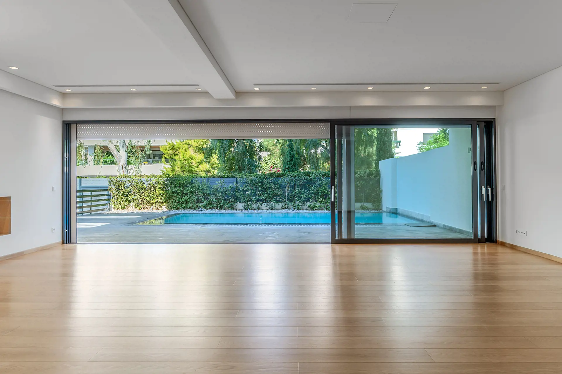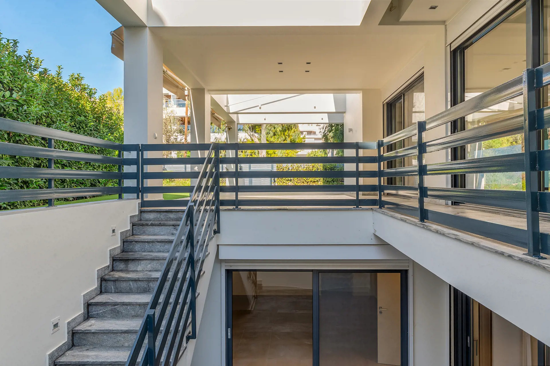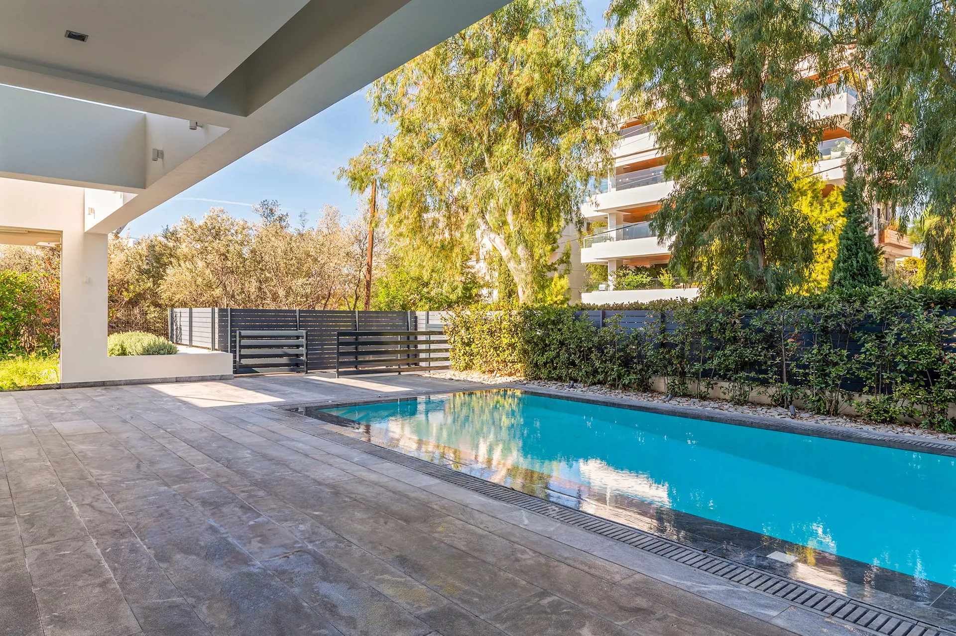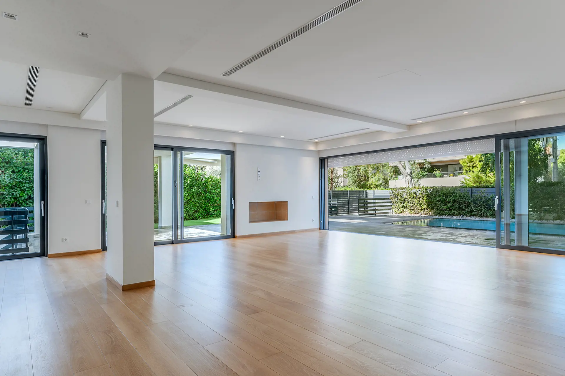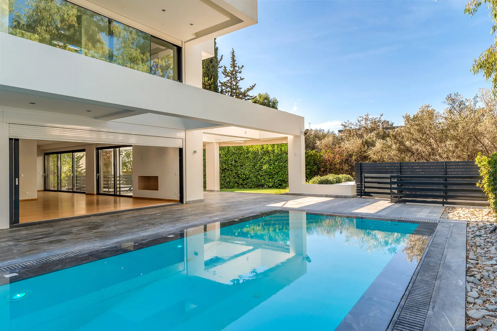Impressive 493 sq.m. three-level maisonette in Voula – Center, featuring a private 380 sq.m. garden and a 28 sq.m. swimming pool, set on a 1,250 sq.m. plot. Built in 2010, this luxurious residence combines modern comforts, high-end amenities, and sophisticated aesthetics in one of the most prestigious locations on the Athenian Riviera. The property is spread across three levels: Ground floor (145.21 sq.m.): Bright open-plan living and kitchen area with garden views. 1st floor (140.62 sq.m.): Four bedrooms (three master) with en-suite bathrooms, spacious terraces, and serene green views. Basement (playroom – two storage rooms totaling 99 sq.m.): Includes a laundry room, two additional rooms, a kitchen, two large cour anglaise ensuring natural light, and a staircase leading to the garden. The home is equipped with independent heating per level, air conditioning, an internal elevator, smart home technology, a perimeter alarm system, security cameras, and fiber optics. High-quality wood, granite, and tile surfaces, combined with a sleek minimal design, create an elegant and timeless aesthetic. Situated in a quiet neighborhood, just 250 meters from the beach and close to shopping areas, parks, schools, and restaurants, this property offers a perfect balance of tranquility and easy access to urban conveniences. The property is available on Uniko, the ultimate destination for real estate transactions in Greece, backed by the reliability of the National Bank. Learn more about the property below.