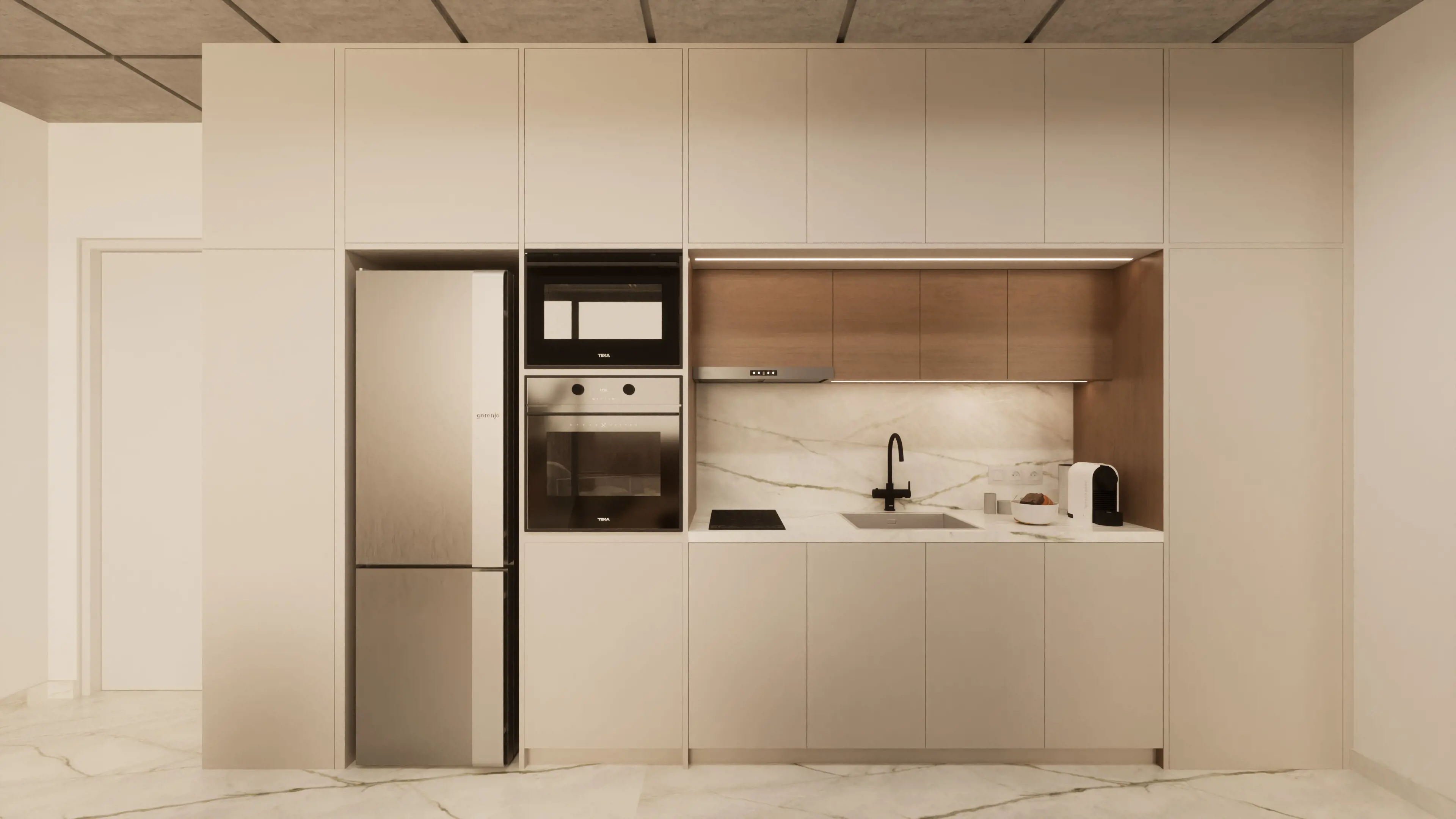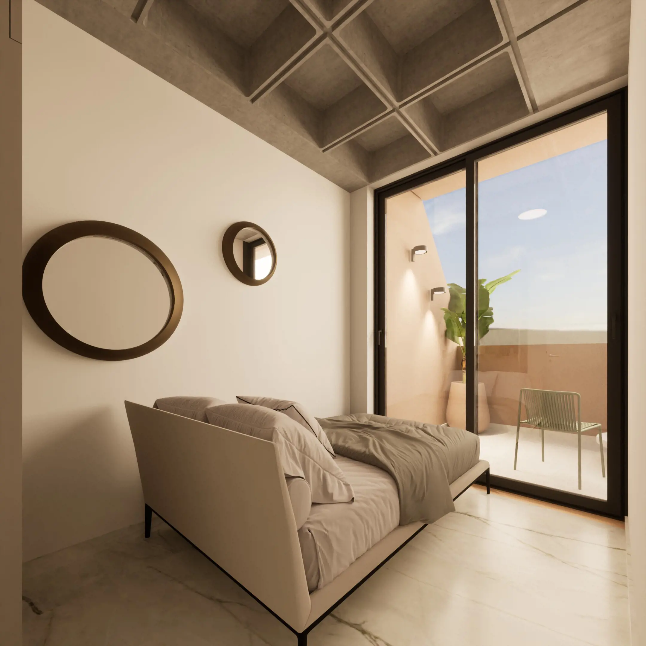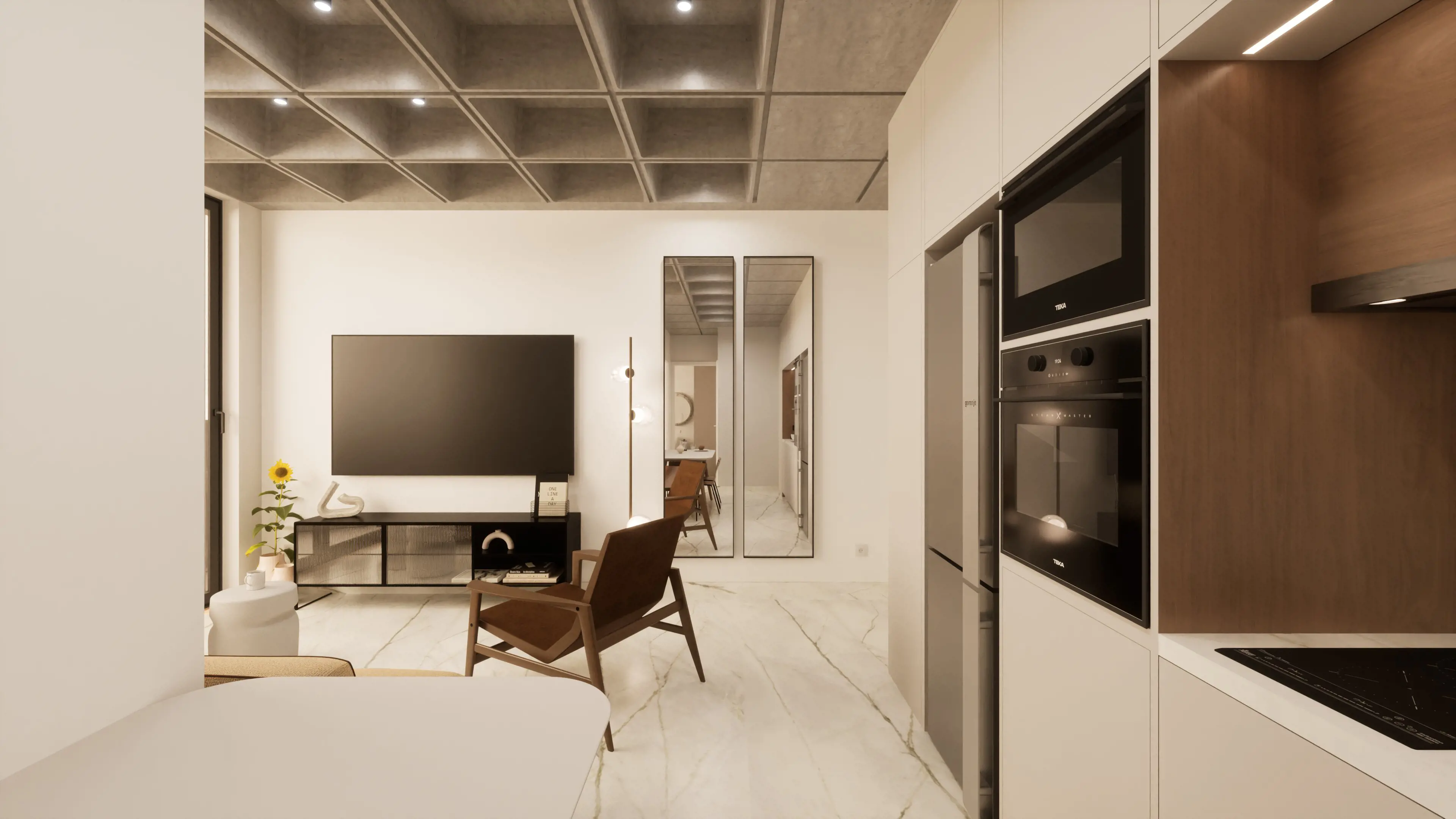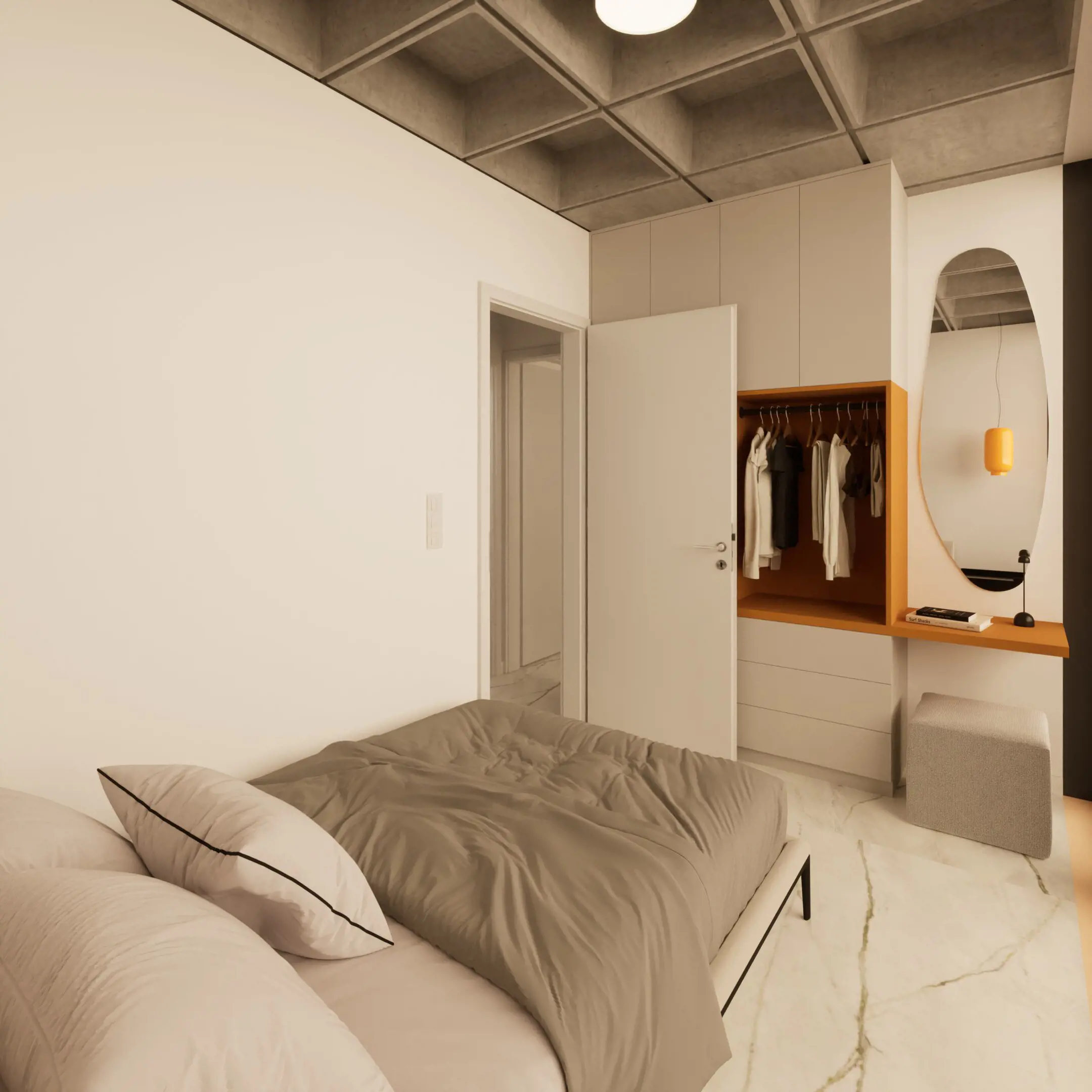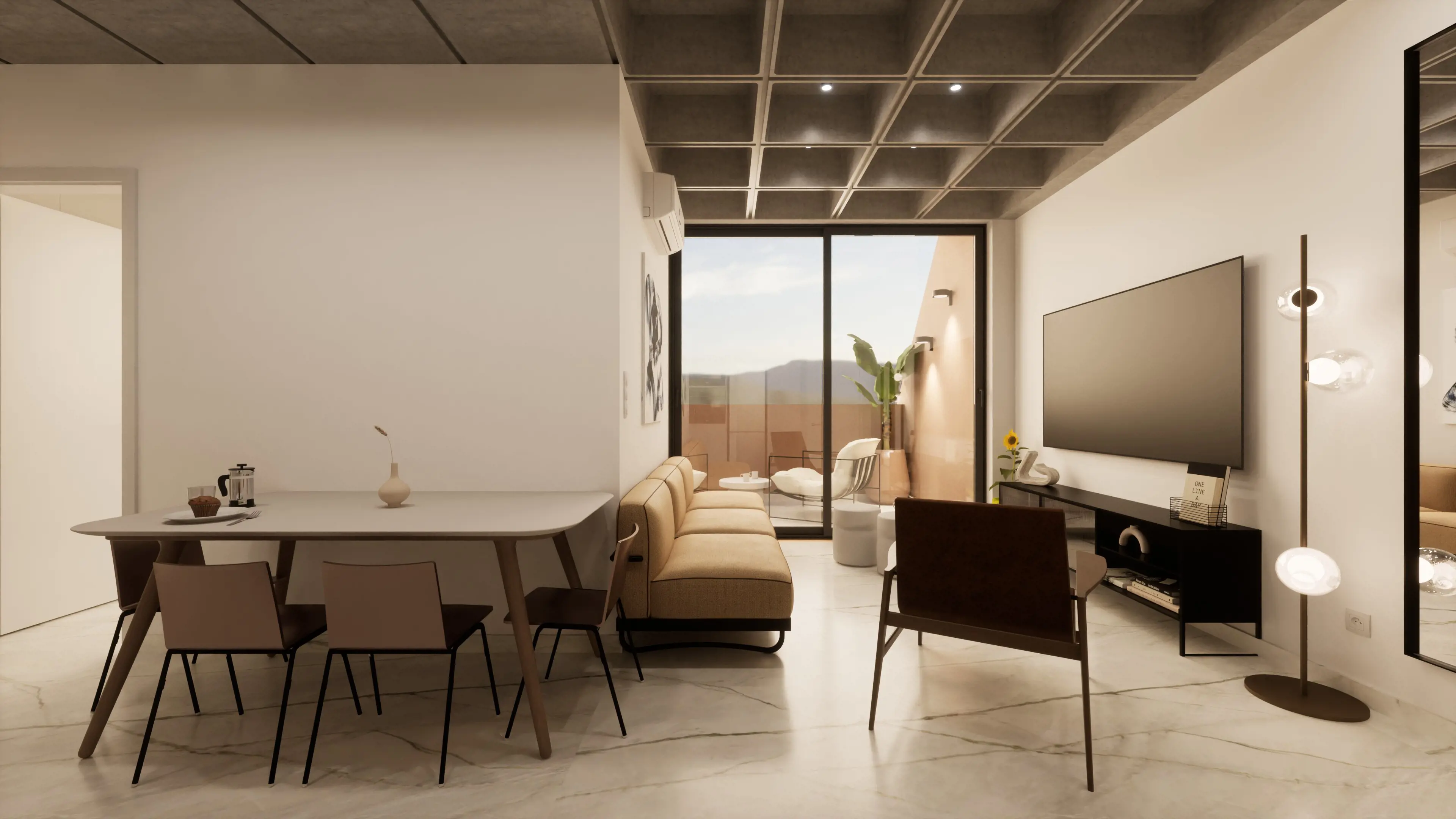 This unique 108 sqm apartment (48 sq.m. internal space και 60 sq.m. private roof terrace) was originally part of a commercial office building, now transformed into a modern residential space. It features a smart layout with 1 bedroom, 1 bathroom, and an open-plan kitchen, and comes fully furnished. Residents also enjoy access to a shared gym and their own private rooftop terrace, perfect for relaxation. - E1