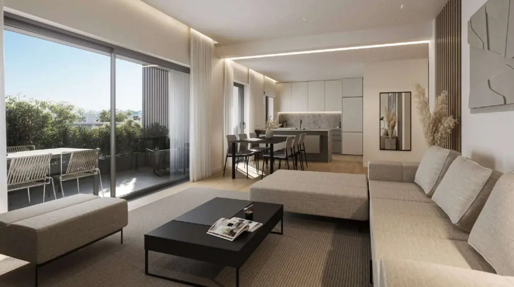 The property is built with energy-efficient aluminum frames with thermal break by Alumil or ETEM, high-grade thermal facade insulation, pre-finished oak wooden floors, and airy open-plan spaces with abundant natural light.