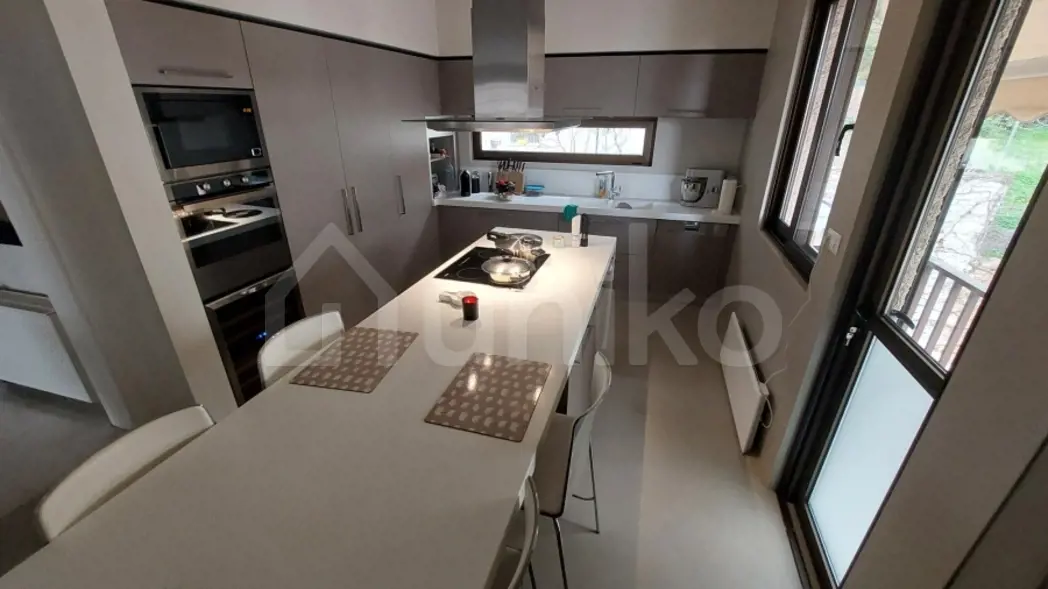 A 180 sq.m. penthouse apartment on the 3rd floor, located in the Ilioupoli – Astynomika area, is available for sale. It consists of four bedrooms, including one master, two bathrooms, a separate kitchen, and a spacious living room. The property also includes two outdoor parking spaces. It was originally built in 1983 and underwent a complete, high-quality renovation in 2023. The apartment stands out for its refined aesthetics, featuring Corian kitchen countertops, wall finishes, concealed lighting, and luxurious materials. Flooring includes wood and marble, and the window frames are thermally insulated with double glazing. The energy certificate is rated category C. Heating is autonomous with oil, and additional systems include air conditioning, a solar water heater, and boiler. The apartment is bright, airy, freshly painted, and front-facing, offering good views. It is ideal for family living or investment purposes. It includes a security door, intercom, elevator, awnings, screens, jacuzzi, built-in electrical appliances, and storage room. The location is 6,000 meters from the city center, 7,000 meters from the beach, and 30,000 meters from the airport. The penthouse is available on Uniko, the new ultimate destination for real estate transactions in Greece, backed by the reliability of the National Bank. Learn more about the property below.