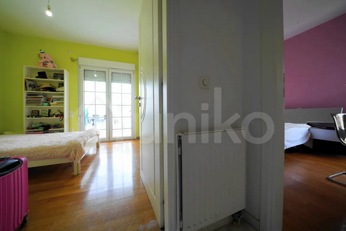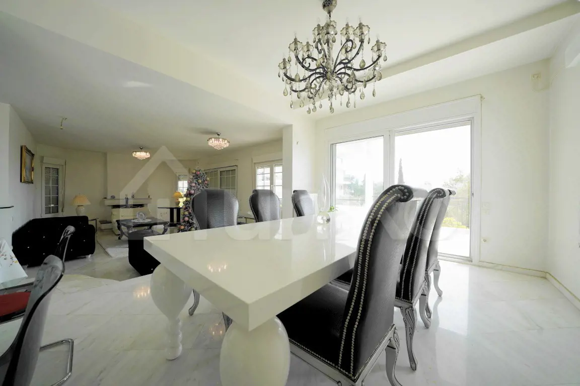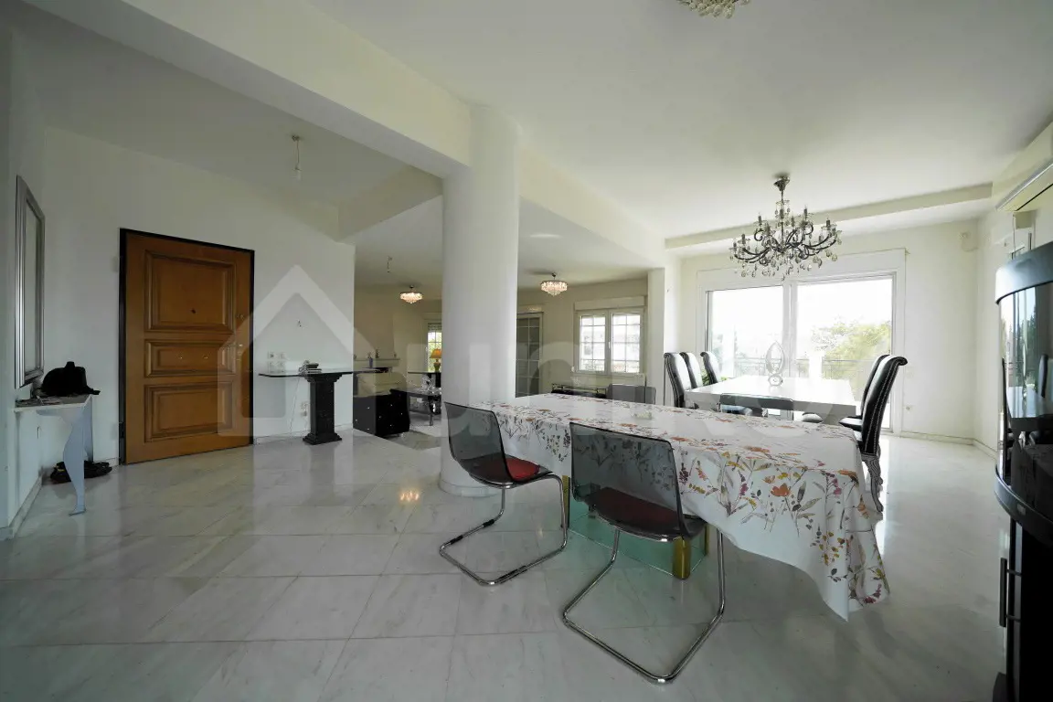 In Voula, in the sought-after Dikigorika area, a fully renovated 165 sq.m. floor apartment is available for sale, located on the 1st floor of a very well-maintained building. This front-facing, airy, and exceptionally bright residence offers a comfortable and functional living environment. It was originally built in 1996 and fully renovated in 2005. The spacious central area stands out with its thoughtful layout and impressive Dionysos marble flooring, hosting the living room with a fireplace, the dining area, and the open-plan, fully equipped kitchen. The apartment features 3 bedrooms (one of them a master), 2 bathrooms, and an additional WC. It is equipped with a security door, video intercom, aluminum frames with double glazing and insect screens, autonomous oil heating, air conditioning units, and a solar water heater with boiler. All rooms connect to balconies, with the front balcony offering a beautiful sea view. The building also provides an elevator, a garden, a seating area with a barbecue, and an active well. Located close to the sea in a quiet yet central part of Voula, this property offers immediate access to shopping, the beach, and public transportation — making it a truly unique opportunity. This property is available on Uniko, the new, ultimate destination for real estate transactions in Greece, backed by the reliability of the National Bank. Learn more about the property below.