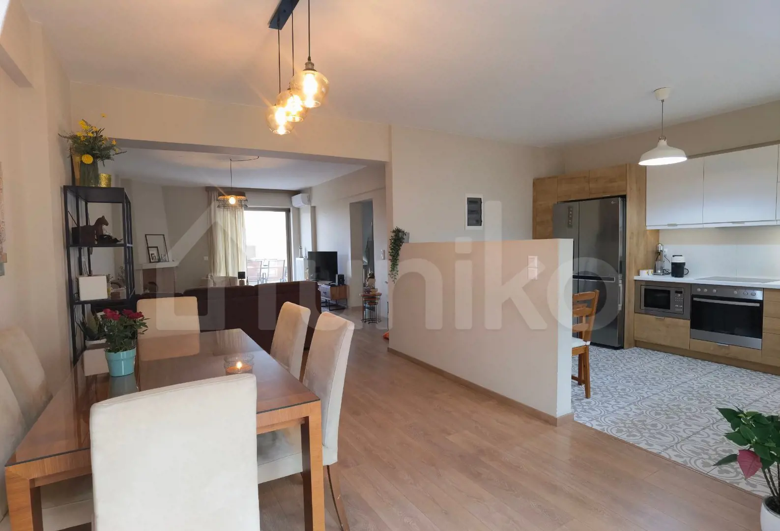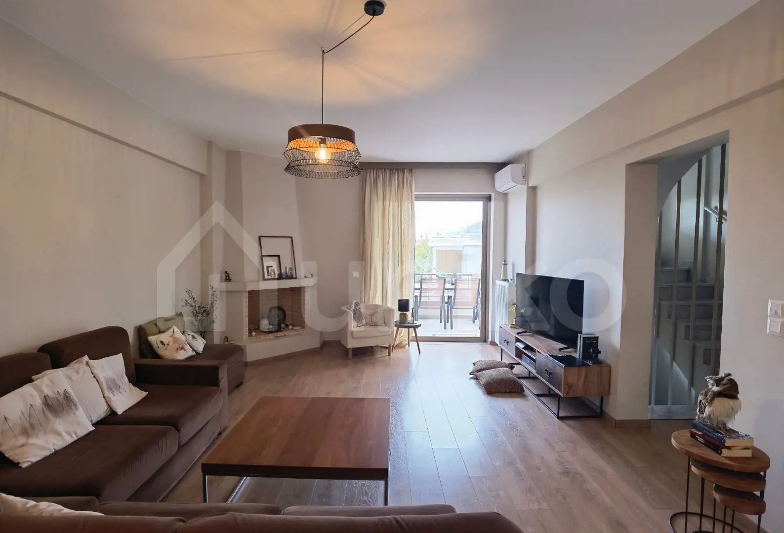 In a quiet neighborhood of Gerakas, with easy access to schools, shopping, and public transport, a superb three-level maisonette of 205 sq.m. with exclusive use of a 60 sq.m. garden is available for sale—an ideal blend of comfort, practicality, and modern features. The elevated ground floor (61 sq.m.) includes the main entrance, a bright living room with fireplace and access to a veranda with lovely views, a spacious kitchen with built-in appliances and direct access to the private garden, as well as a guest WC. The first floor (61 sq.m.) hosts three bedrooms, one of which features a fireplace and en-suite bathroom. The semi-basement (83 sq.m.) offers a large open space suitable as a bedroom, office, or playroom, along with a bathroom, boiler room, and storage. The maisonette features heat pump heating, solar water heater, air conditioning, thermal insulation, security door, alarm system, aluminum frames with double glazing and insect screens, basement storage, and two parking spaces. This property is available on Uniko, the new, ultimate destination for real estate transactions in Greece, backed by the reliability of the National Bank. Learn more about the property below.