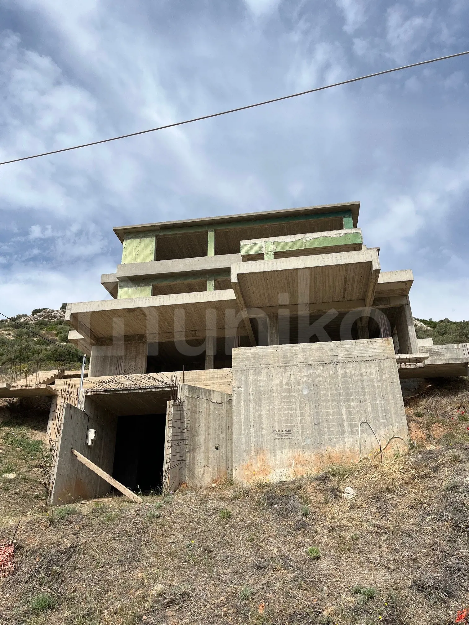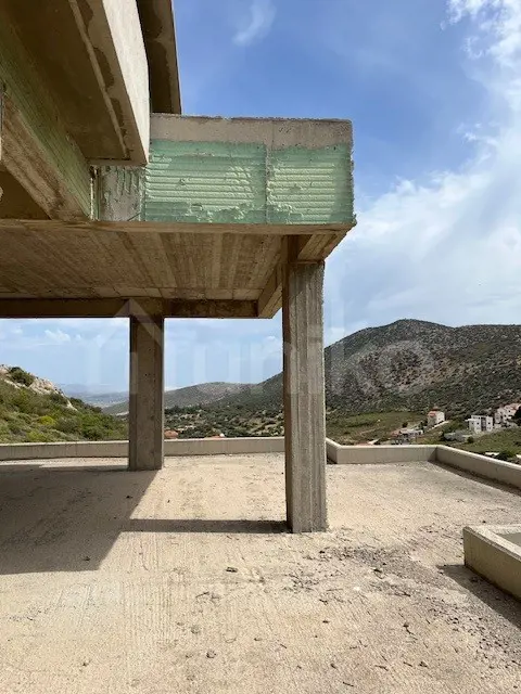 For sale: an under construction residential property in the Municipality of Markopoulo Mesogeas, with a total area of 631.07 sq.m., including 260.59 sq.m. of main living spaces, 99.63 sq.m. of balconies, and 41.47 sq.m. of semi-open spaces. The property is situated on a 652.11 sq.m. plot with a steep slope, offering panoramic views over the Mesogeia plain and the airport. The structural framework has been completed, and the property is planned for two independent maisonettes (132.10 sq.m. and 128.72 sq.m. respectively), plus underground auxiliary spaces with a total area of 371.40 sq.m. The layout includes: Basement level B: 188.36 sq.m. Basement level A: 183.04 sq.m. Ground floor: 183.04 sq.m. with balconies of 54.16 sq.m. First floor: 77.55 sq.m. with semi-open spaces of 41.47 sq.m. and balconies of 4.45 sq.m. The location offers direct access to Attiki Odos (5 minutes) and Athens International Airport (10 minutes), while the beach at Avlaki is just 10 minutes away. There is the option to modify the existing plans to create one spacious single residence or more than 8 studio apartments, tailored to the needs of the new owner. The property is available at Uniko, the new ultimate destination for real estate sales in Greece, with the reliability of the National Bank of Greece. Learn more about the property below.