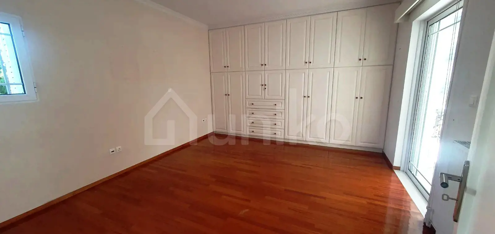 In Glyfada, Pyrnari area, for sale an elevated ground-floor floor-apartment of 141 sq.m., built in 1997. The floor-apartment includes a living room, dining area, fully equipped kitchen with built-in appliances, two bedrooms, a 25 sq.m. auxiliary space, bathroom and WC. It features autonomous heating, fireplace, air conditioning, double-glazed windows with screens, security door, solar water heater and alarm system. This dual-aspect, bright floor-apartment has verandas and is close to public transportation, schools, and the local market. There is a parking space for one car. The property is available at Uniko, the new ultimate destination for real estate sales in Greece, with the reliability of the National Bank of Greece. Learn more about the property below.