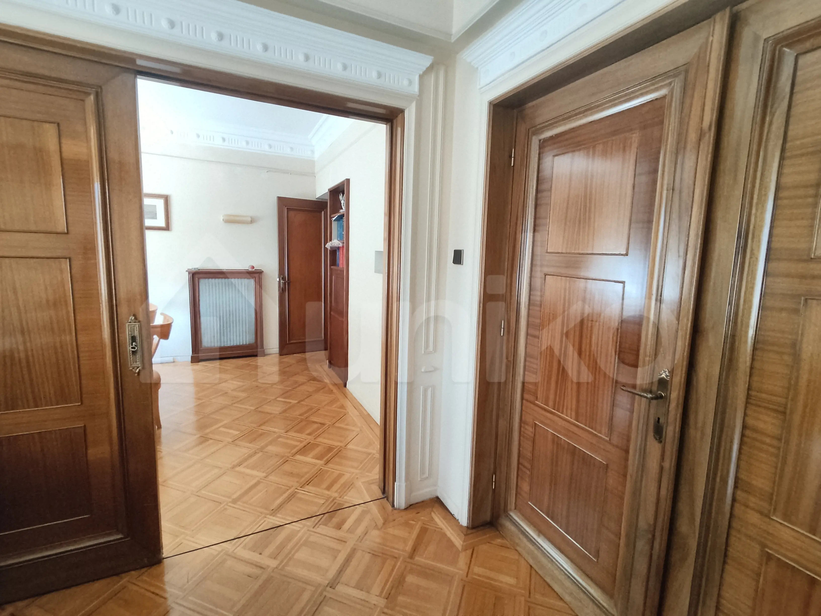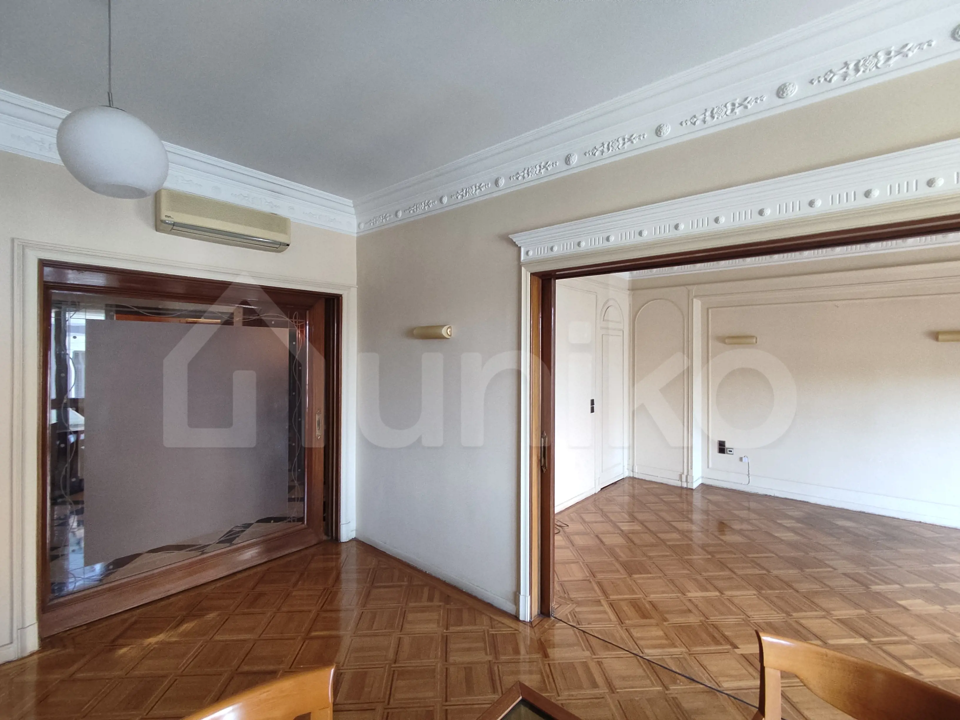 Located on the 3rd floor of a landmark building in Athens, this stunning 180 sqm residence is a rare blend of historic charm and functional space. Originally built in 1960 and carefully renovated in 2010, the apartment retains original architectural elements, including murals, hand-crafted finishes, and a fireplace, offering an atmosphere of refined grandeur. The apartment includes 5 bedrooms, 1 bathroom, 2 WC, and comes with a basement storage room. It is also sold with rooftop rights on the 9th floor, offering unique development potential. Its generous layout and noble features make it ideal for both residential use and professional purposes, such as an office, law firm, or gallery space. Situated in the cultural and academic core of Athens, surrounded by universities, museums, and major transport links.