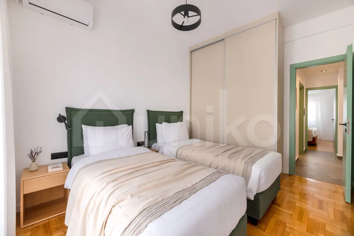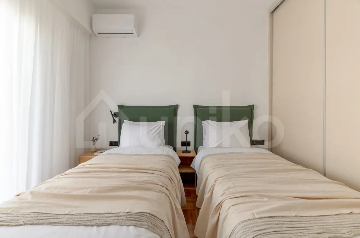 In the vibrant neighborhood of Harokopou in Kallithea, this renovated 4th-floor apartment offers 98 sq.m. of comfort and urban practicality. Renovated in 2022 and currently rented, it makes a perfect investment property or ready-to-live-in home. The layout includes three bedrooms, two bathrooms, a separate kitchen, and a bright living room with direct access to a sunlit veranda. The apartment comes fully furnished and features air conditioning, aluminum double-glazed windows, ceramic tile flooring, a security door, household appliances, and elevator access. Bright and front-facing, the residence benefits from its proximity to public transport and local markets, making daily life easy and efficient. A property that combines functionality, modern updates, and immediate income potential. The property is available on Uniko, the new premier destination for real estate transactions in Greece, backed by the trust of the National Bank of Greece. Learn more about the property below.
