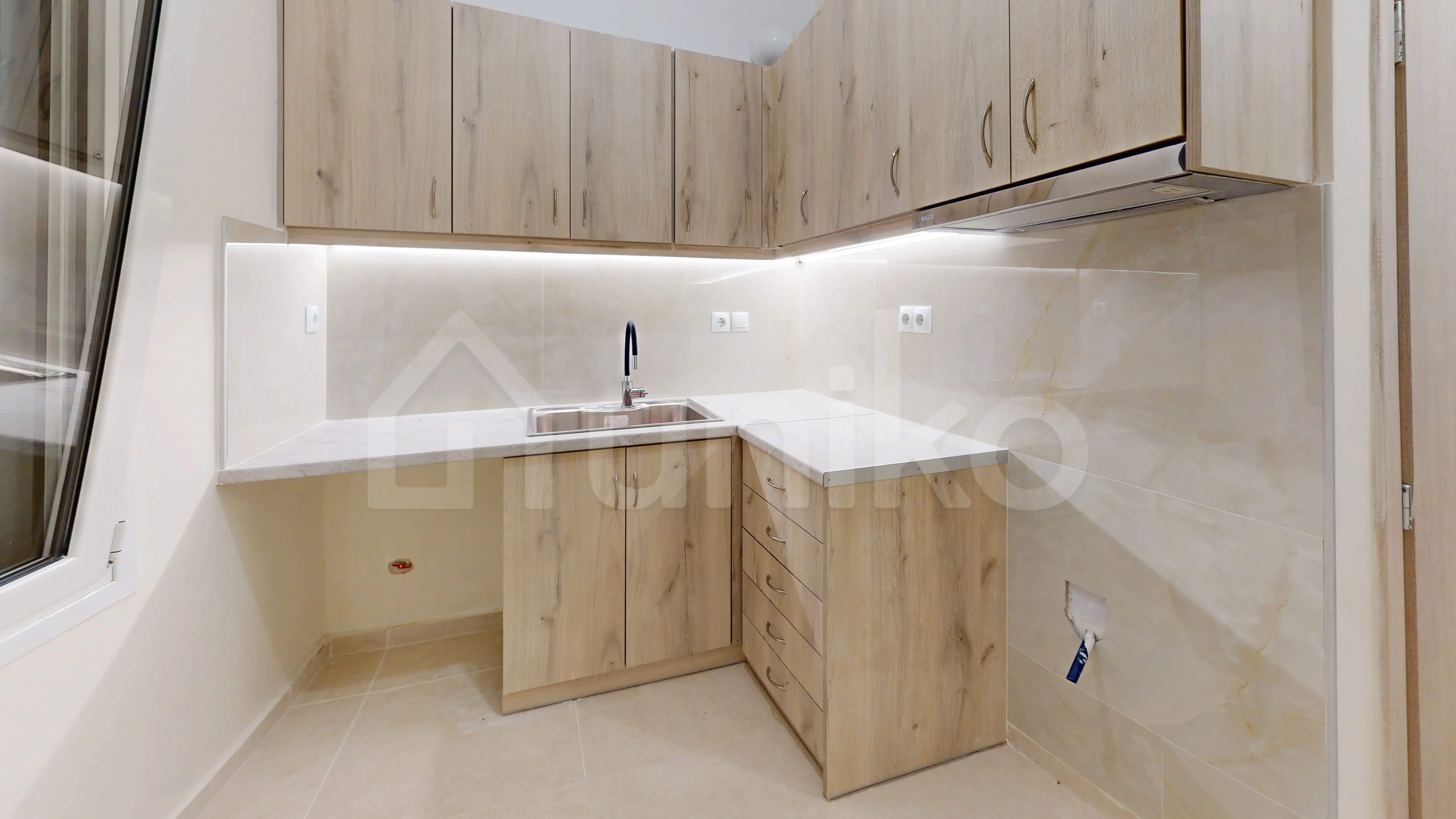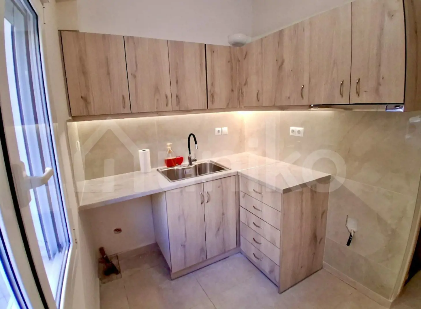 Keratsini (Agios Panteleimonas): An exceptional corner semi-basement apartment is available for sale, with a total area of 40 sq.m., built on a plot of 150 sq.m. The property was built in 1974 and completely renovated in 2025, offering a modern and functional living space. It consists of 1 bedroom, 1 living room, 1 hall-dining room, 1 kitchen, and 1 bathroom. It has wardrobes in the bedrooms for extra storage space, aluminum window frames with triple energy-efficient glass and screens, tiled floors, central oil heating, electric water heater, air conditioning in each bedroom, security door, and video intercom. It is located close to public transport and the local market, and is only 1.3 km from the Maniatika metro station. The property is available on Uniko, the new, ultimate destination for real estate sales in Greece, with the reliability of the National Bank. Learn more about the property below.