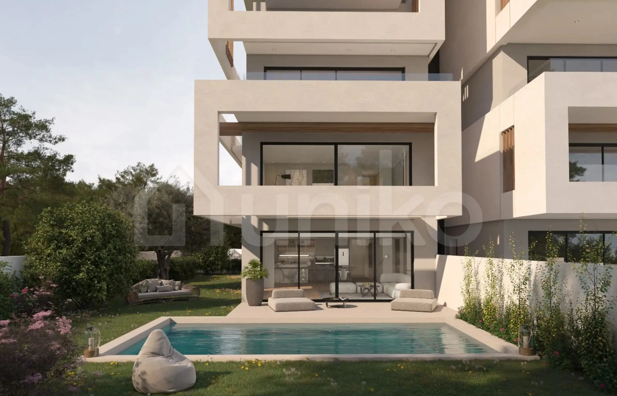 For sale: a newly built 88 sq.m. loft in Glyfada, located on the ground floor of a complex of refined aesthetics and top-tier energy performance rated A+. The loft features two bedrooms, including one master, two bathrooms, a modern open-plan kitchen, and bright living spaces designed for comfort and style. It also offers a private 90 sq.m. garden, a 26 sq.m. terrace, a swimming pool, a storage room, and one parking space. It is equipped with a solar water heater, LG heat pump, underfloor heating, and energy-efficient aluminum frames, ensuring excellent thermal and sound insulation. Additional features include Smart Home systems, photovoltaic panels with Net Billing, a reinforced security door, and pre-installed alarm wiring for maximum comfort and safety. The property is set in a peaceful and well-developed neighborhood of Glyfada, close to schools, shops, and various entertainment options. It lies just 650 meters from Dino Metheniti Square, ideal for relaxing walks and outings, while the beautiful Asteria Beach is only 3 kilometers away. The property is available on Uniko, the new, ultimate destination for real estate transactions in Greece, backed by the reliability of the National Bank of Greece. Learn more about the property below.