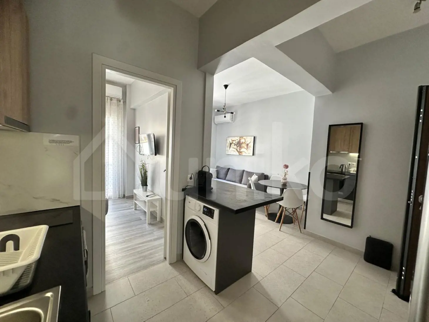 50 sq.m. fully renovated apartment on the 1st floor, built in 1975, located in Neos Kosmos. It features 2 bedrooms, 1 bathroom, autonomous electric heating, air-conditioning and night-time electricity tariff. Bright and airy, with balconies and a security door. The building offers an elevator; the property includes a solar water heater, fly screens, and comes furnished. Airbnb license available.