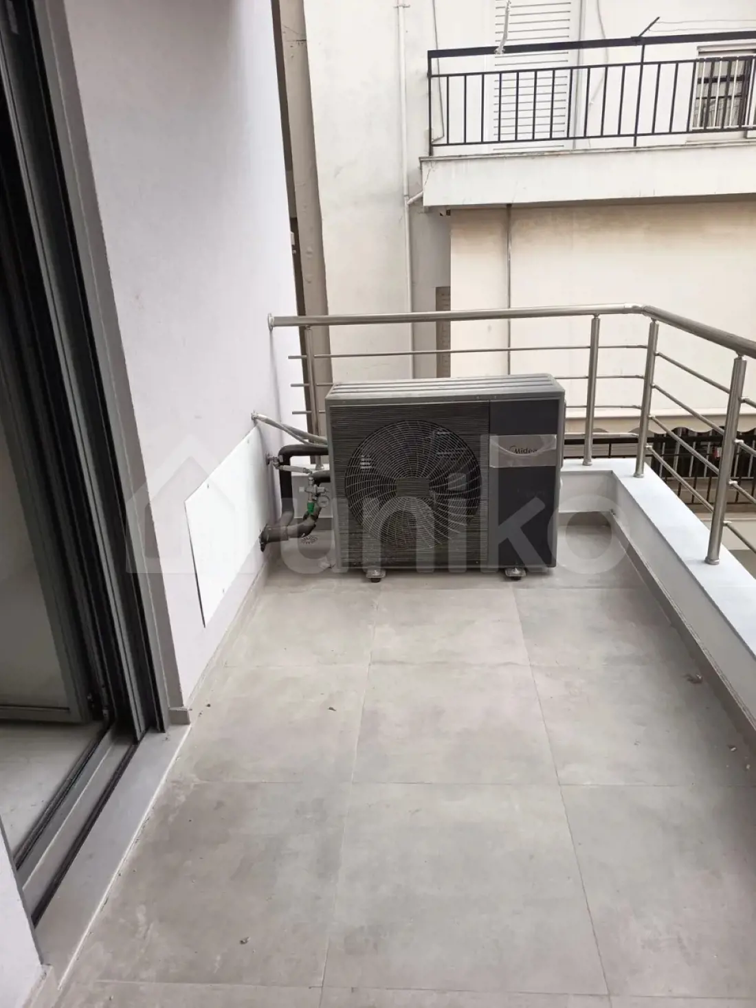 Top-floor apartment on the 1st floor with a total surface of 108 sq.m., located in Petroupoli, within a modern building of distinctive architectural design that spans five floors and is set in a very quiet area. The top-floor apartment is dual-aspect, featuring large openings and spacious balconies that provide abundant natural light and a strong sense of openness. The top-floor apartment comprises three bedrooms and one bathroom, arranged in a functional and contemporary layout. The property includes two parking spaces, one covered in the pilotis and one in the basement, as well as a storage room. It is energy upgraded with 10 cm thermal insulation, energy-efficient window frames, autonomous heating and cooling via heat pump, air conditioning, solar water heater, fireplace and a reinforced security door, achieving an A+ energy efficiency rating. The building is served by an elevator, while the surrounding landscaped garden enhances privacy and overall living quality. Petroupoli is a well-organized residential area, known for its calm atmosphere and easy access to local shops and essential services, offering a balanced and comfortable lifestyle. The property is available on Uniko, the new ultimate destination for real estate transactions in Greece, backed by the reliability of the National Bank of Greece. Learn more about the property below.